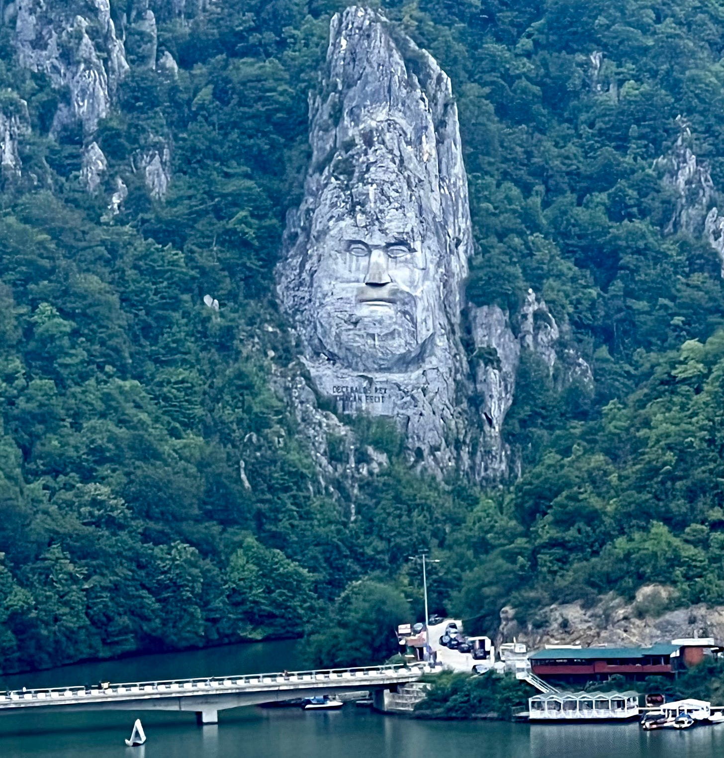 大坝上可以走汽车和自行车,从塞尔维亚一侧骑过河的中线,就到了罗马尼亚,入境关口设在北岸。一出关就是70号公路,高速行驶的大货车络绎不绝,跟塞尔维亚一侧车辆稀疏的沿河公路形成巨大反差。