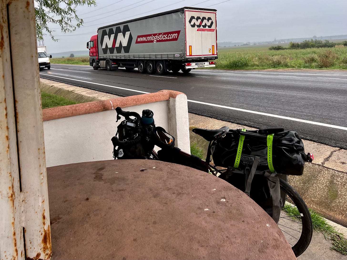 从匈牙利开始,专用自行车道越来越少,不守规矩的司机越来越多,我已经逐渐习惯了在公路上跟各种车辆同行,但70号公路上贴着路边高速行驶的大货车队仍然有些令人望而生畏。离关口大约15公里的地方有座名叫德劳贝塔的城镇,我决定快速骑到那里住下来,好在路面平坦,又是顺风,不到半小时就进入城区。